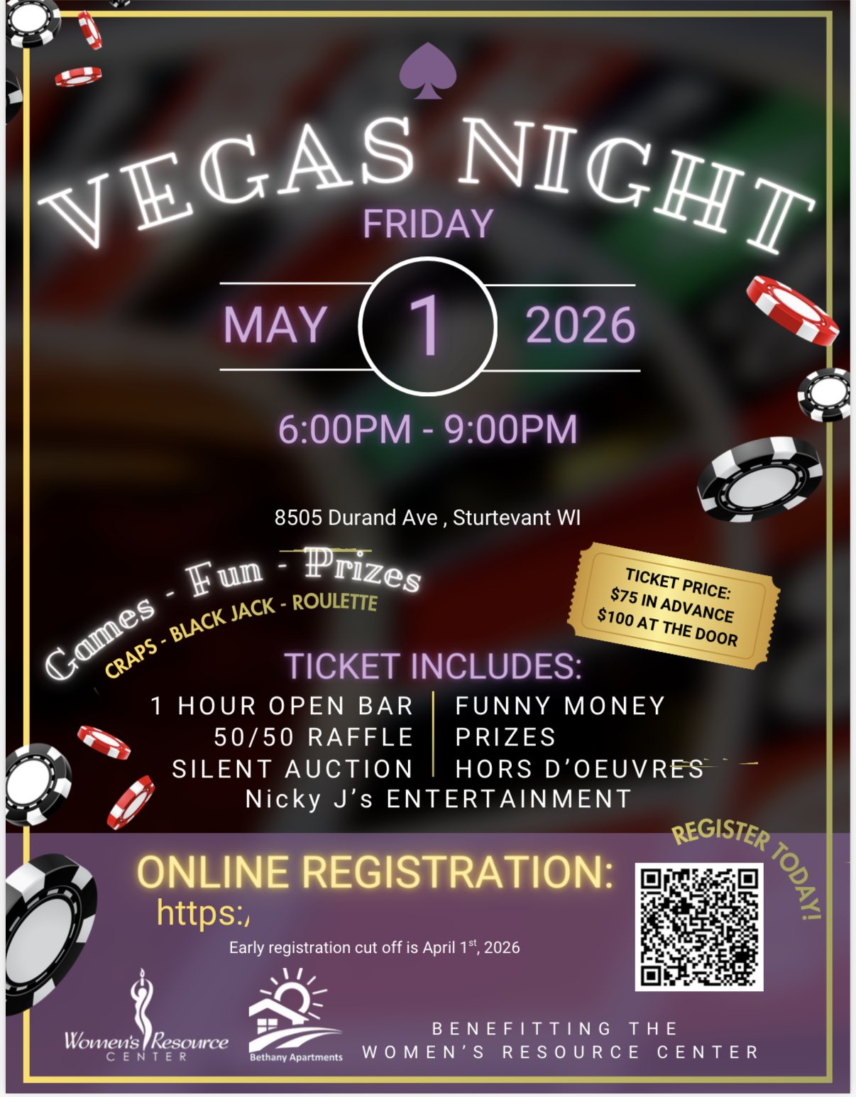 Vegas Night is an exciting, high-energy evening of fun, games, and community impact—all in support of Women’s Resource Center of Racine, Inc..